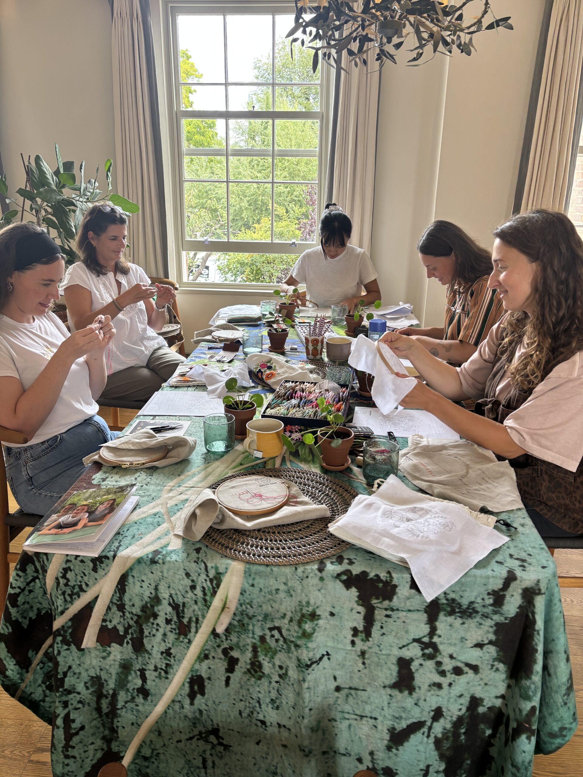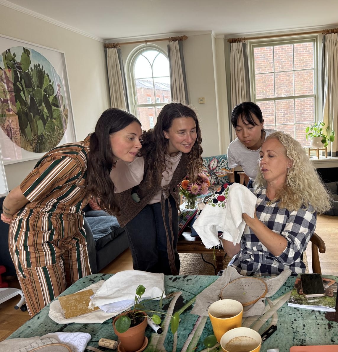 We’re based in West London, but our embroidery & cross stitch workshops can take place anywhere across the UK – from cozy cafés to community halls. All you need is a space with comfy seating and natural light!